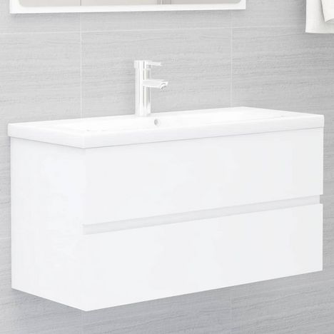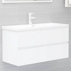Armoire d'evier avec lavabo integre Blanc Bois d'ingenierie