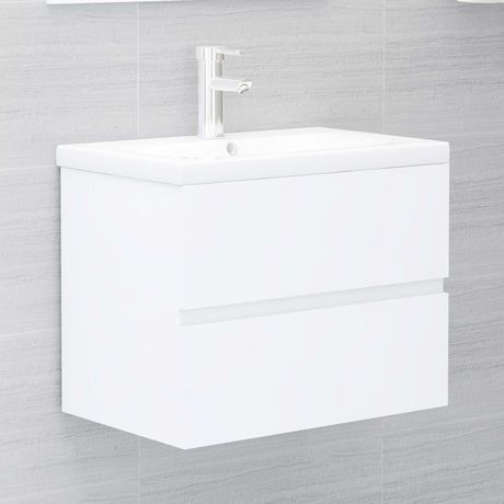 Armoire d'evier avec lavabo integre blanc bois d'ingenierie