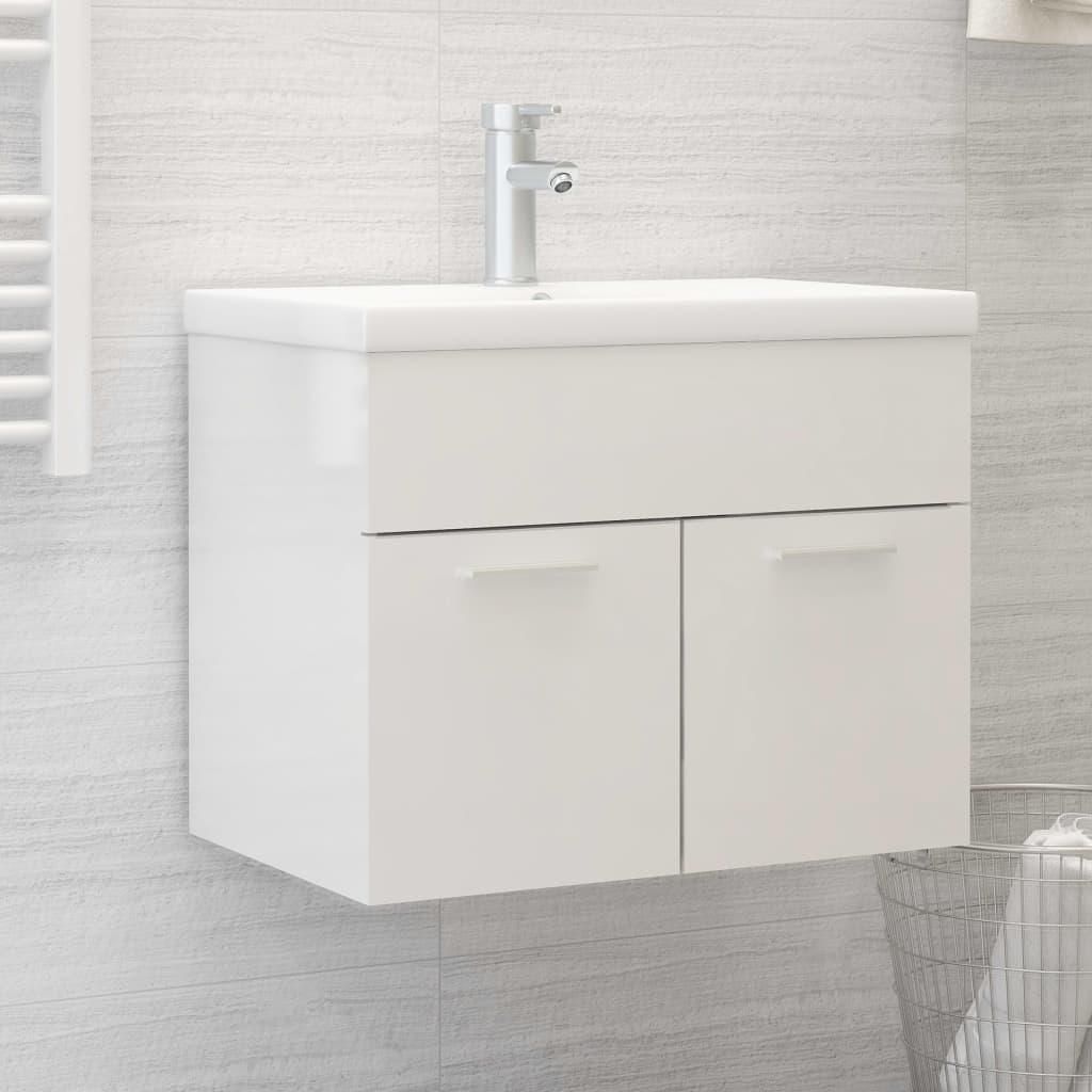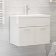 Armoire d'evier avec lavabo integre Blanc brillant Agglomere