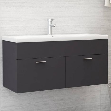 Armoire d'evier avec lavabo integre Gris Agglomere