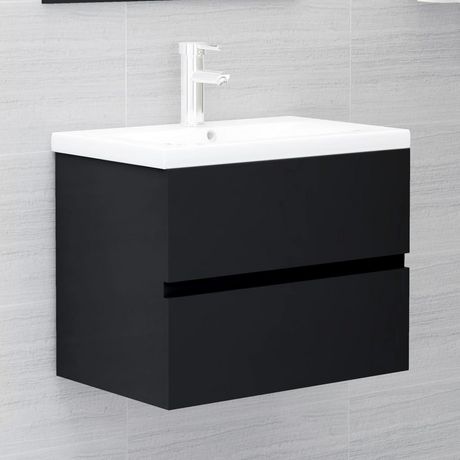 Armoire d'evier avec lavabo integre Noir Agglomere