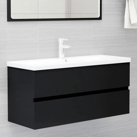 Armoire d'evier avec lavabo integre Noir Agglomere