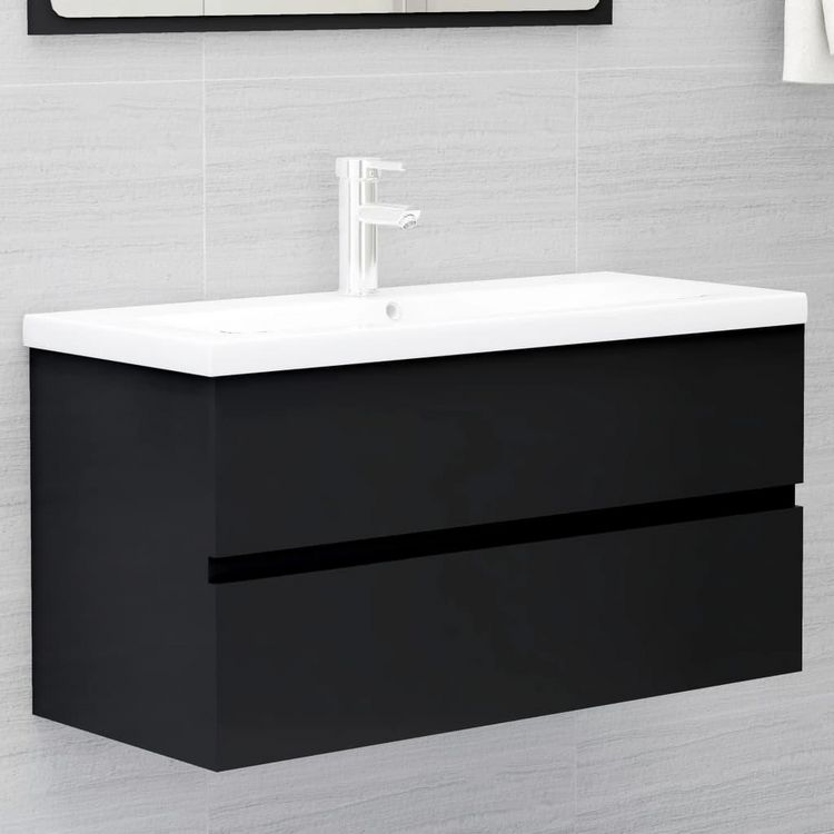 Armoire d'evier avec lavabo integre Noir Bois d'ingenierie