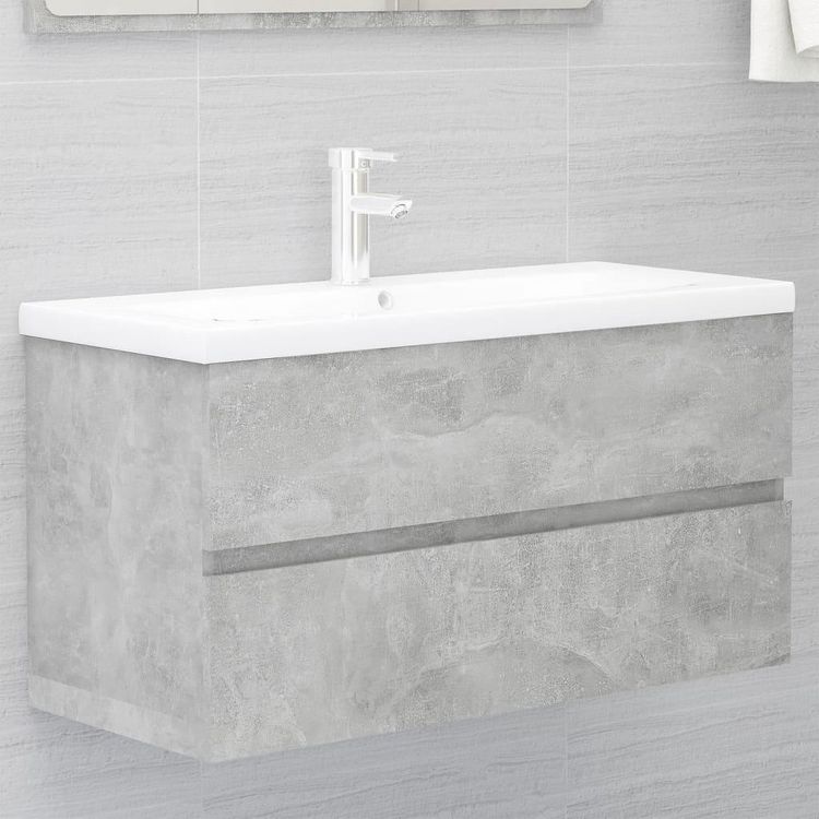 Armoire d'evier et lavabo integre Gris beton Bois d'ingenierie