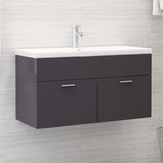 Armoire d'evier et lavabo integre Gris brillant Bois ingenierie