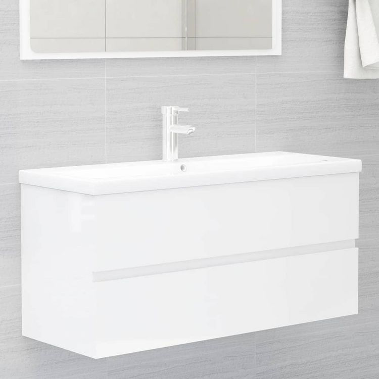 Armoire d'evier lavabo integre blanc brillant bois d'ingenierie