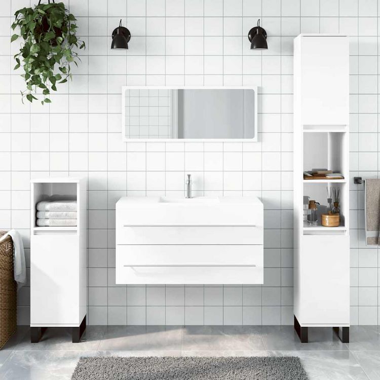 Armoire de bain avec miroir blanc brillant bois d'ingenierie