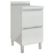 Les deux tiroirs équipés de rails coulissants fluides offrent un accès rapide aux ustensiles. Leur capacité généreuse permet de ranger couverts, accessoires culinaires ou denrées sèches en toute organisation, réduisant les déplacements inutiles pendant le service.