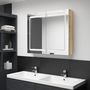 Armoire de salle de bain a miroir a LED Blanc et chene