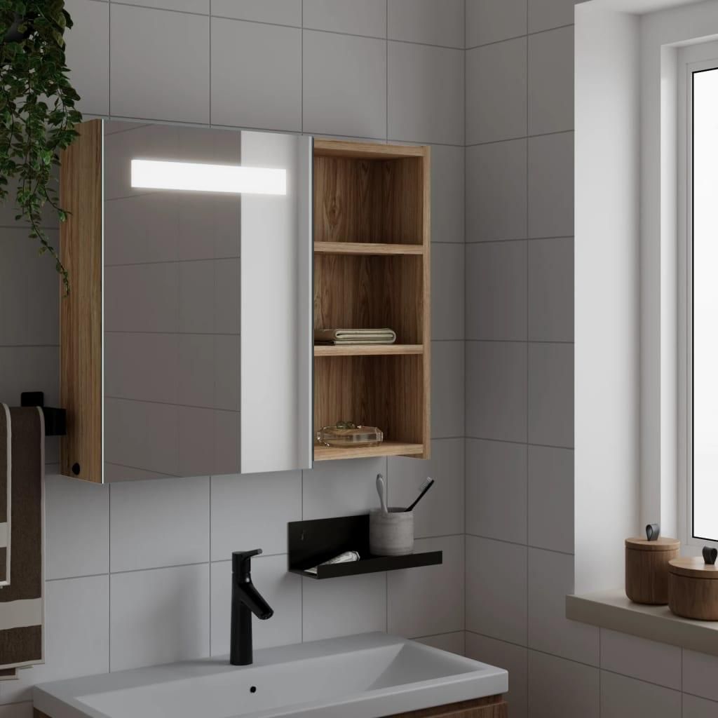 Armoire de salle de bain a miroir avec LED chene 60x13x52 cm