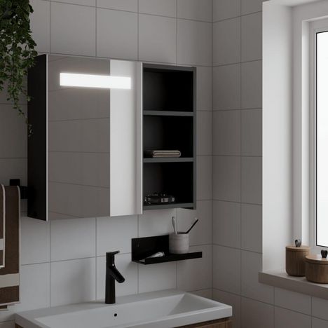 Armoire de salle de bain a miroir avec LED noir 60x13x52 cm