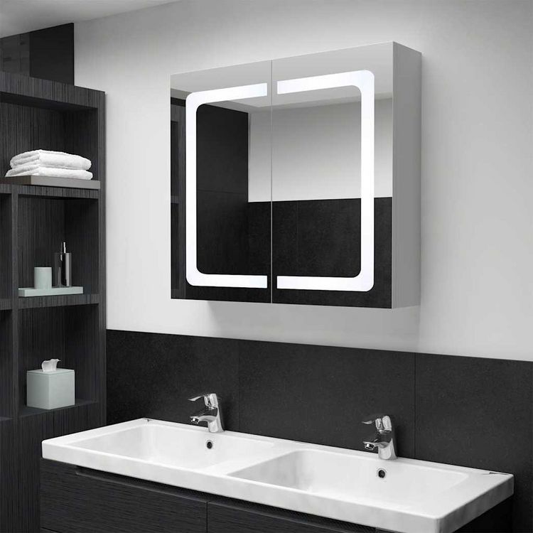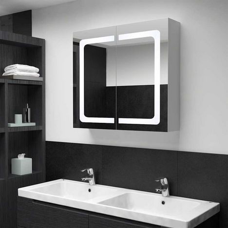 Armoire de salle de bain a miroir LED 80x12,2x68 cm