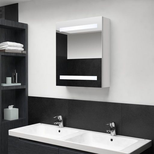 Armoire de salle de bain a miroir LED blanc brillant 50x14x60cm