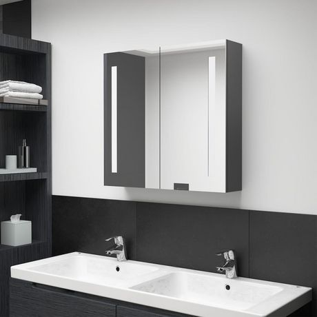 Armoire de salle de bain a miroir LED Gris 62x14x60 cm