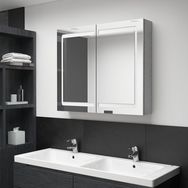 Armoire de salle de bain a miroir LED Gris beton 80x12x68 cm