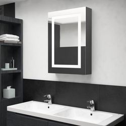 Armoire de salle de bain à miroir LED gris brillant 50x13x70 cm