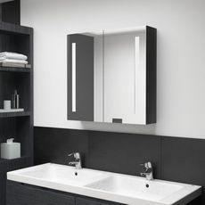 Armoire de salle de bain à miroir LED noir brillant 62x14x60 cm