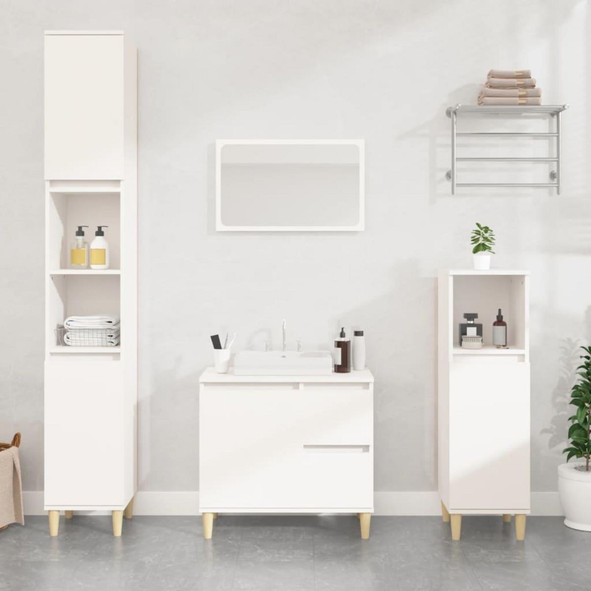Cette armoire de salle de bain est un excellent choix pour votre salle de bain, la rendant bien rangee et organisee ! Materiau durable : le bois d'ingenierie est d'une qualite exceptionnelle avec une surface lisse et presente egalement resistance, stabilite et resistance a l'humidite.Grand espace de