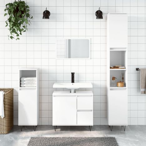 Cette armoire de salle de bain est censee etre un excellent supplement a votre salle de bain, ce qui lui donne une apparence ordonnee et saisissante ! Materiau durable : le bois d'ingenierie est d'une qualite exceptionnelle avec une surface lisse et presente egalement resistance, stabilite et resist