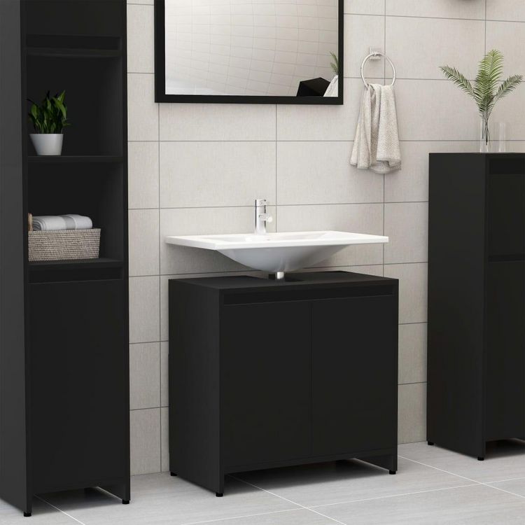 Armoire de salle de bain noir 60x33x61 cm Bois d'ingenierie