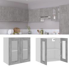 Armoire en verre suspendue Gris beton Bois d'ingenierie