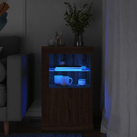 Armoire laterale avec lumieres LED chene marron bois ingenierie