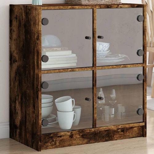 Armoire laterale avec portes en verre chene fume 68x37x75,5 cm