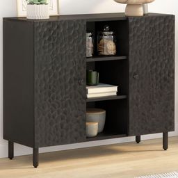 Armoire laterale noir 90x33x75 cm bois massif de manguier