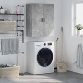 La couleur gris béton confère à cette armoire un aspect moderne et neutre, permettant une intégration facile dans divers styles de décoration. Le design minimaliste et la finition soignée contribuent à créer une ambiance élégante et raffinée dans n'importe quelle pièce. L'armoire est conçue pour être montée au mur, ce qui optimise l'espace disponible tout en ajoutant une touche de sophistication.