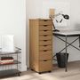 Armoire roulante avec tiroirs MOSS bois de pin marron miel
