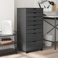 Armoire roulante avec tiroirs MOSS gris bois de pin solide