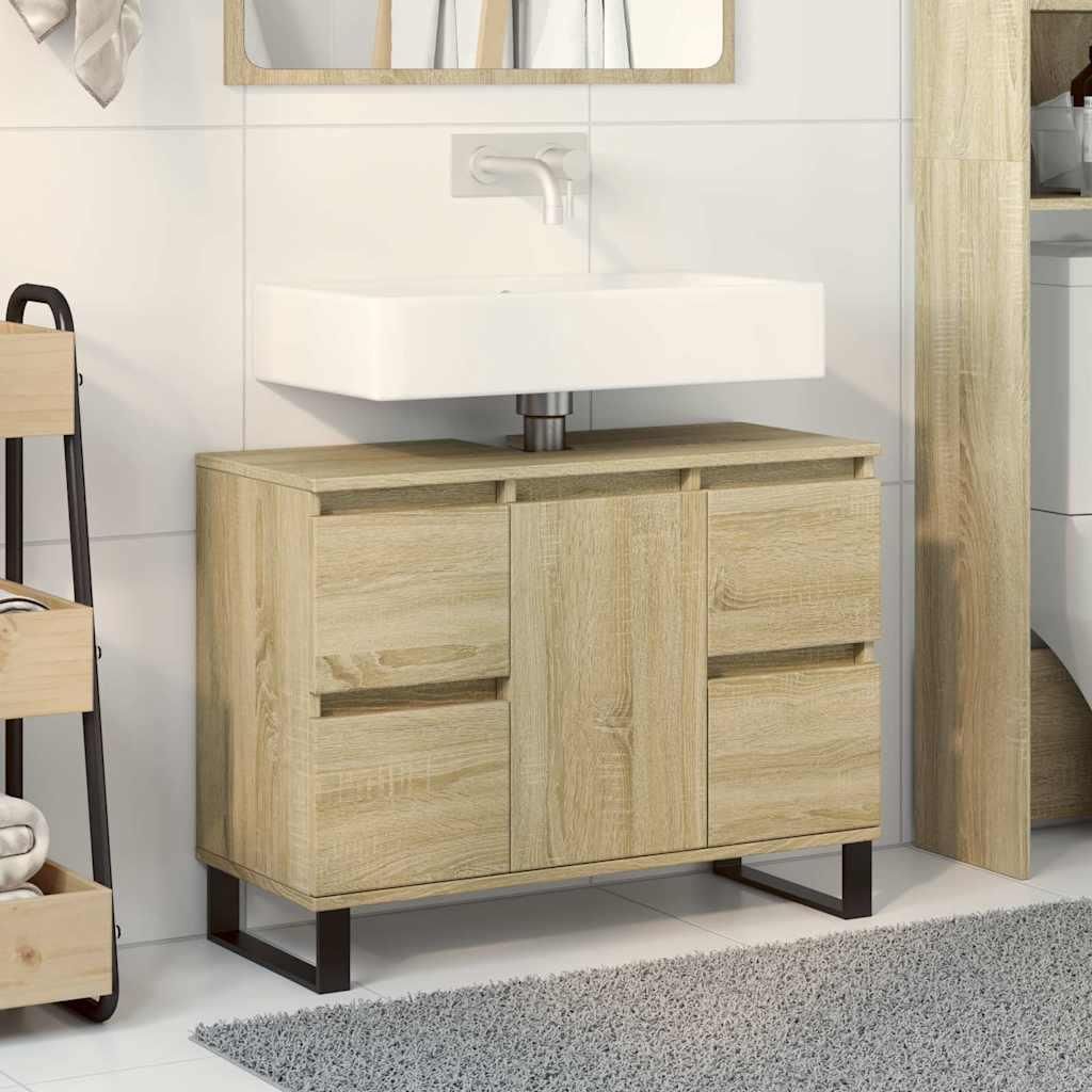Armoire salle de bain chene sonoma 80x33x60cm bois d'ingenierie