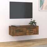Armoire TV suspendue Chene fume 80x36x25 cm Bois d'ingenierie
