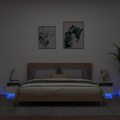 Armoires de chevet avec lumieres LED 2 pcs blanc 40x39x37 cm