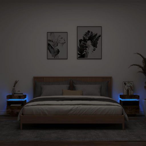Armoires de chevet avec lumieres LED 2 pcs chene fume