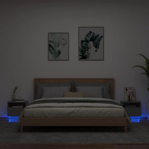 Armoires de chevet avec lumieres LED 2 pcs noir 40x39x37 cm