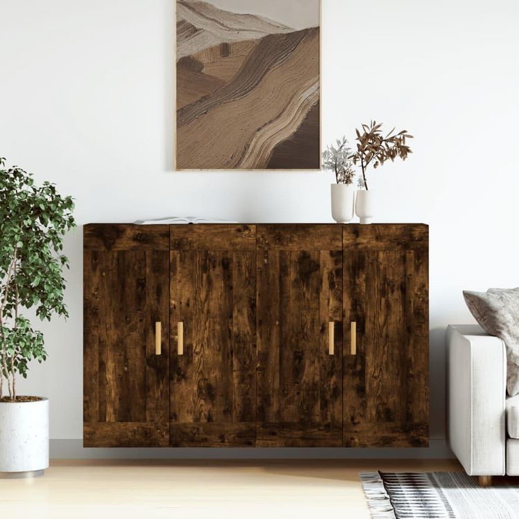 Armoires murales 2 pcs chene fume bois d'ingenierie