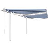 Auvent automatique capteur de vent/LED 4x3,5 m Bleu et blanc