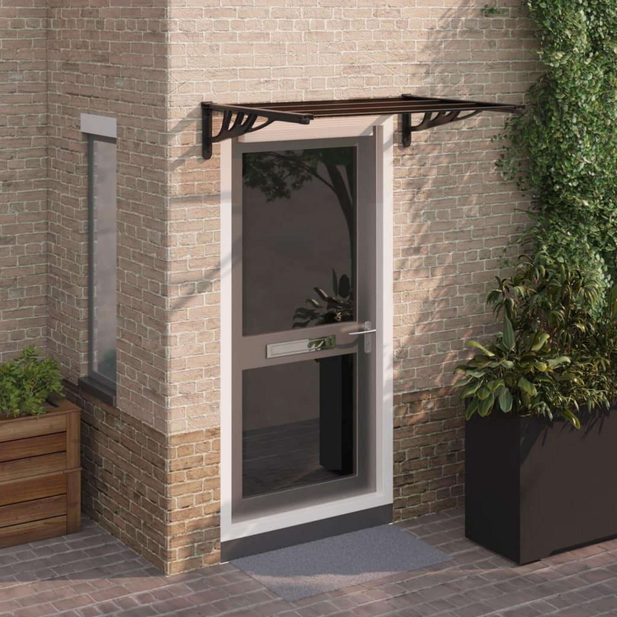 Cet auvent de porte exquis presente une solution simple pour proteger votre porte de la pluie, de la neige, de la grele et d'autres intemperies.