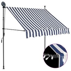 Auvent manuel retractable avec LED 100 cm Bleu et blanc