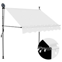 Cet auvent hydrofuge et anti-salissure et resistant aux UV et aux intemperies est fabrique en polyester de qualite avec un revetement PU. Le cadre en acier fort rend l'auvent robuste et durable. L'auvent en polyester facile a nettoyer peut etre retire et lave. Grace a la manivelle de la poignee, ce store est retractable. La hauteur et l'angle du store peuvent egalement etre ajustes. De plus, les lampes LED alimentees par l'energie solaire permettent d'eclairer la nuit. L'auvent est facile a assembler.