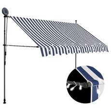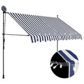 Auvent manuel retractable avec LED 250 cm Bleu et blanc