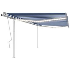 Auvent manuel retractable avec LED 4x3,5 m Bleu et blanc