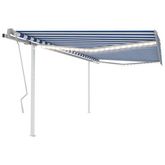 Auvent manuel retractable avec LED 4x3 m Bleu et blanc