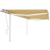 Cet auvent d'exterieur est construit avec un cadre en aluminium enduit de poudre resistant a la rouille, ce qui le rend leger mais robuste. Le solide poteau en fer le rend stable. Le tissu de l'auvent de patio est en polyester haute densite avec revetement en PU, qui est resistant aux UV et a l'eau. De plus, l'angle et la hauteur peuvent etre ajustes pour repondre a vos besoins specifiques. Vous pouvez ouvrir et retracter l'auvent en douceur avec la manivelle longue. De plus, les lampes a LED alimentees par l'energie solaire assurent un eclairage nocturne econome en energie.