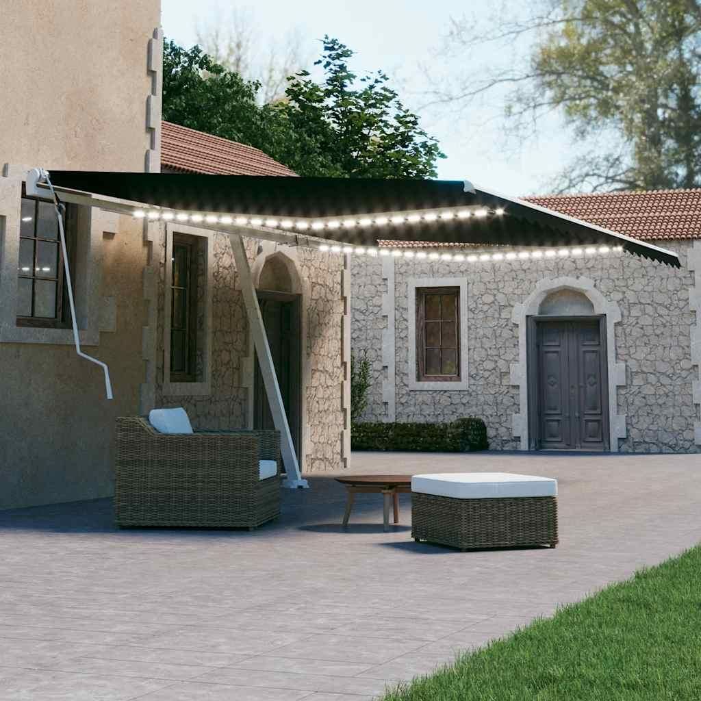 Auvent manuel retractable avec LED 600x300 cm Anthracite