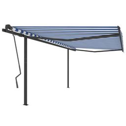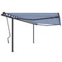 Auvent manuel retractable avec poteaux 4x3,5 m Bleu et blanc