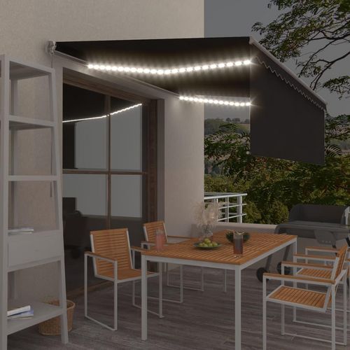 Auvent manuel retractable avec store et LED 4,5x3 m Anthracite