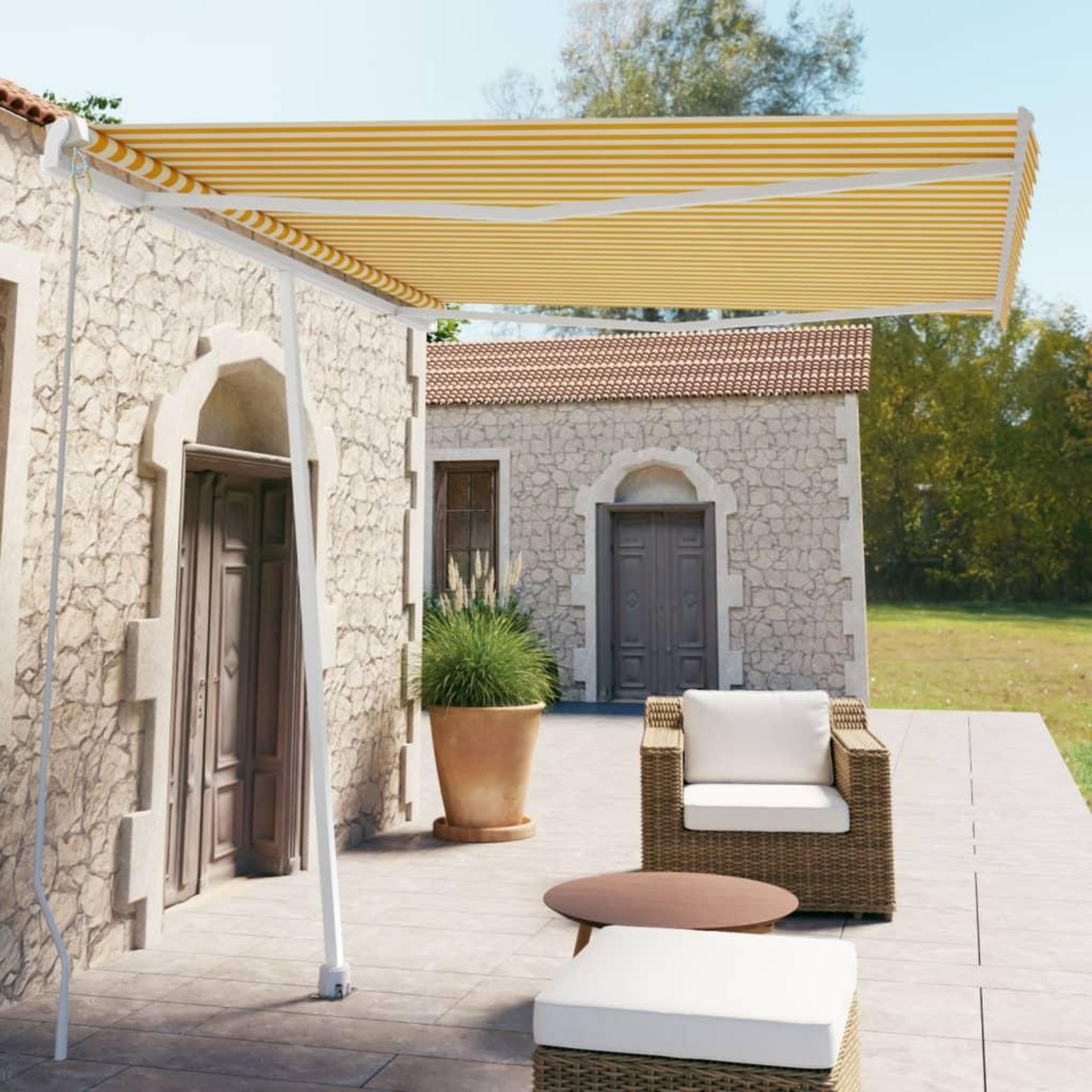 Auvent manuel retractable sur pied 300x250 cm Jaune/Blanc