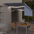 Auvent retractable manuel avec store et LED 5x3 m Bleu et blanc